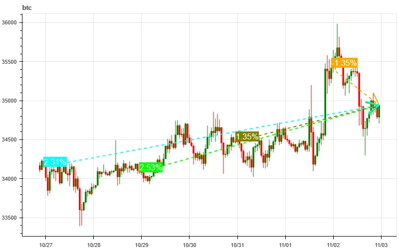 上图是 BTC 过去一周的价格图