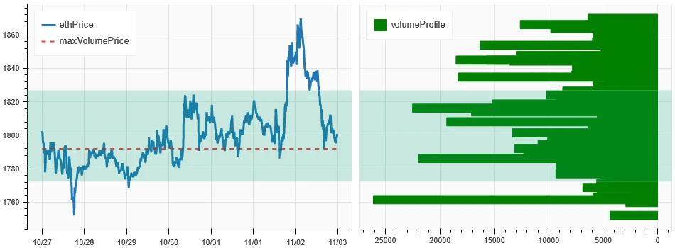 上图是 ETH 过去一周的密集成交区分布图