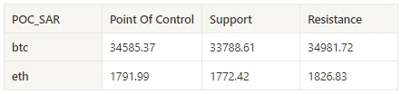 表格显示 BTC 与 ETH 过去一周中每周的密集成交区间