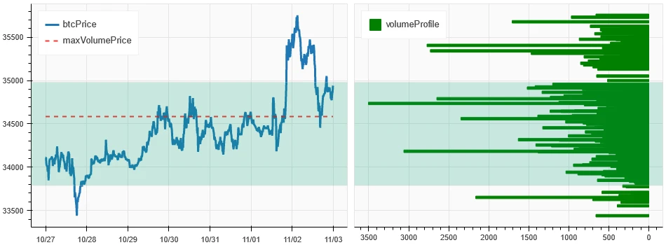 上图是 BTC 过去一周的密集成交区分布图