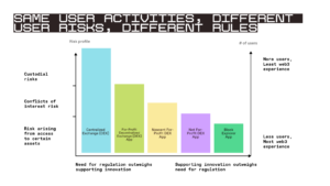 对于现有监管适用的情况,我们评估在Web3中是否有必要将这些监管扩展到其中,或者是否需要根据区块链技术的独特特征进行更加精准的监管。换句话说,是否应该采用"相同用户活动、相同用户风险、相同规则"的原则?或者由于底层技术的不同,类似的用户活动是否会带来不同的风险,并需要制定相应的规则来应对这些差异?