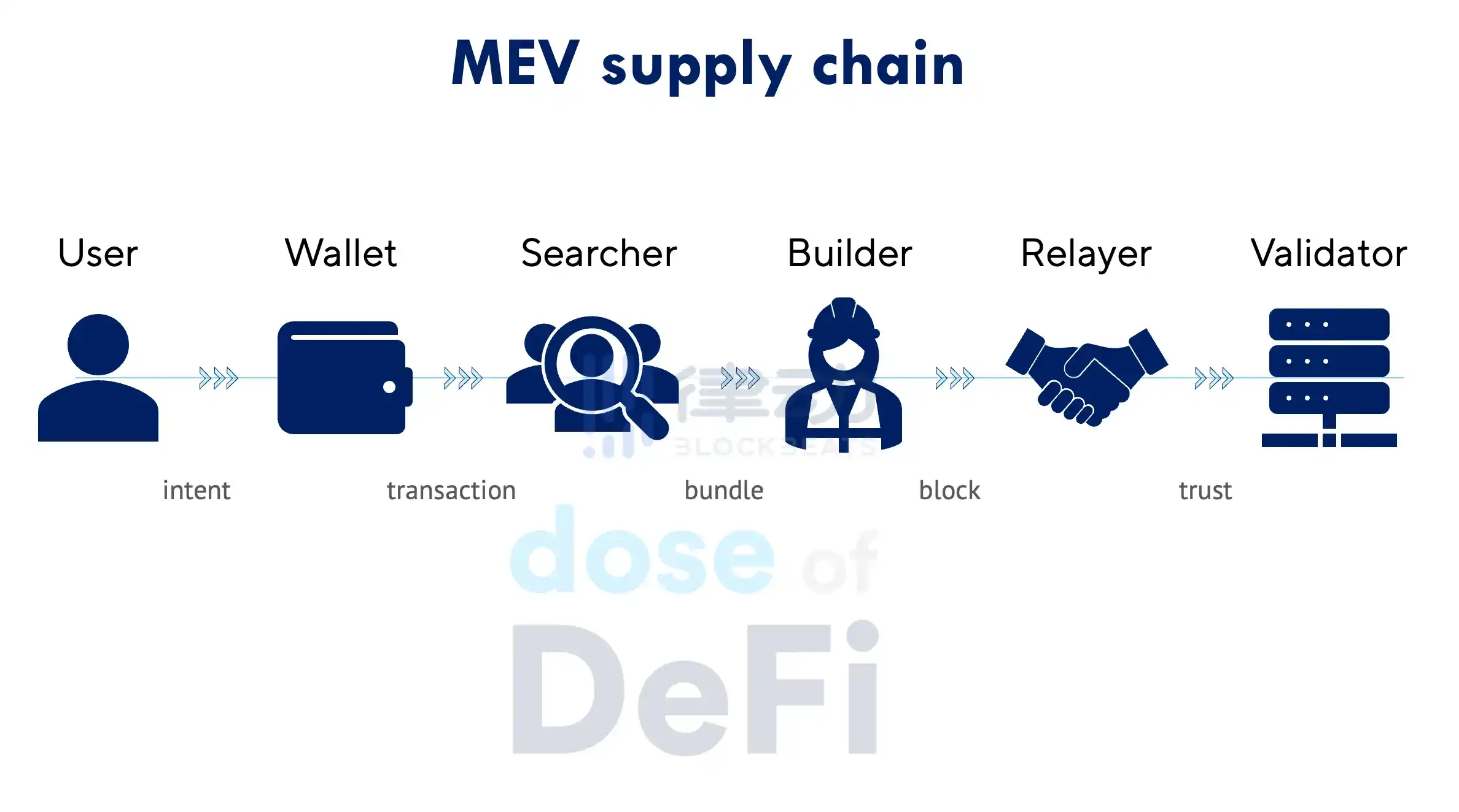 这个图表展示了 MEV 供应链的主要组成部分,据 DeFi 研究员 Chris Powers 在《 MEV resolution: Are we there yet? 》文中写道,说该术语最早正是由 Stephane Gosselin 首次提出。