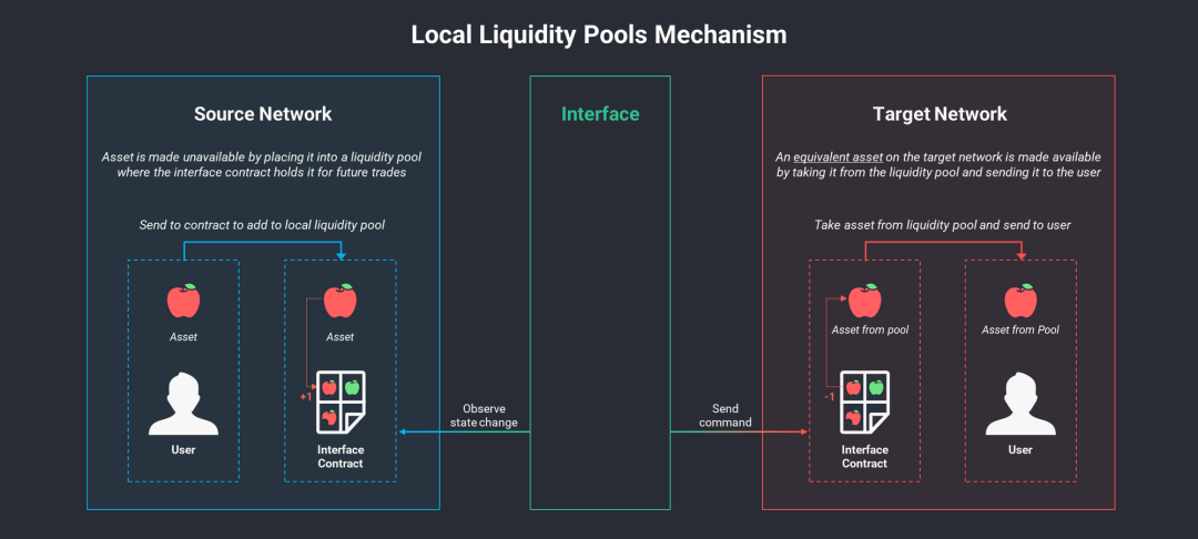 流动性置换涉及使用一种特殊的流动性池来促进跨链交易。当用户进行跨链时,用户可将他们在一条链上的资产存入流动性池,并从另一条链上的流动性池中提取等值的资产。这种方法的好处是它可以提供快速的交易和兑换,但可能会涉及某些费用,因为流动性提供者(LP)通常希望他们提供的流动性能获得回报。
