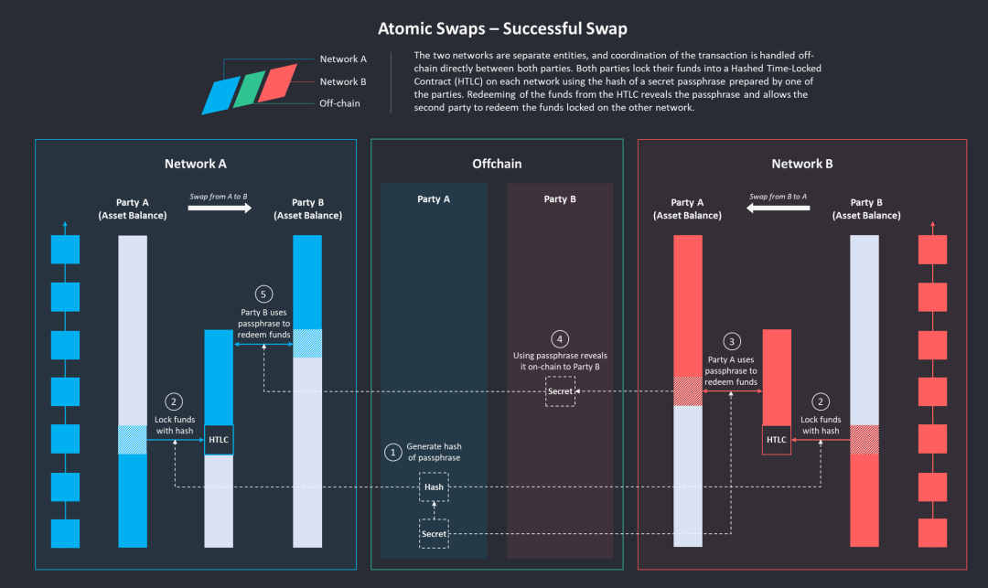 原子兑换允许两方在不需要中介的情况下直接交换资产。它通过利用哈希时间锁合同(HTLC)来实现,确保了交换是「原子性」的,这意味着交易要么全部完成,要么完全不进行。原子兑换类跨链桥存取资产都通过私钥,当一方作恶时,另一方可以通过时间锁(在规定时间后才可以打开)取回资产,不需要中心化的第三方提供信任保障。采用原子兑换类跨链方式的典型项目包括 Connext,cBridge 等。