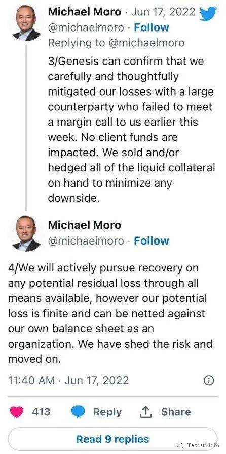 此时,如果向 Genesis 提供比特币的贷方试图撤回比特币,Genesis 将无法履行其义务。在这一点上,Genesis 首席执行官 Michael Moro 此时宣布破产才是正确的处理方式。