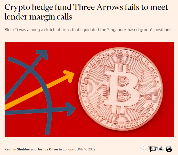 2022 年 5 月 7 日,Terra Luna 生态系统开始崩溃,Luna 和 UST 代币在几天内基本归零。 由于使用了杠杆,LUNA&UST 的倒闭是压垮三箭资本的最后一根稻草,使其彻底破产。
