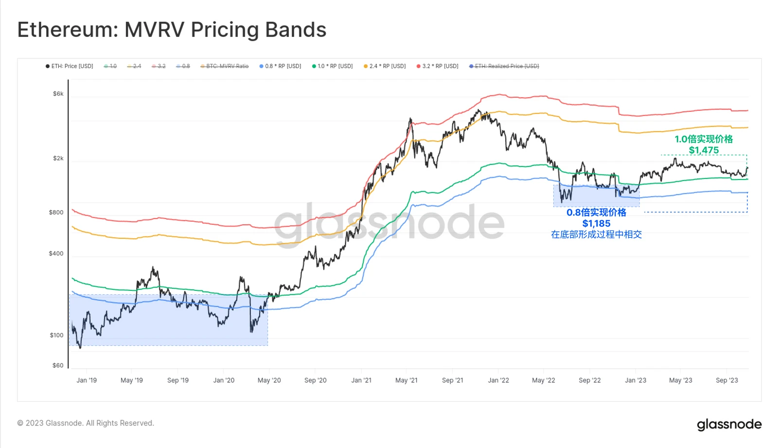 深入研究以太坊价格模型,我们注意到 ETH 的交易价格为 1800 美元,比实现价格(1475 美元)高出 22%。实现价格通常被视为供应中所有币的平均成本基础,按照最后一次交易的时间进行定价。