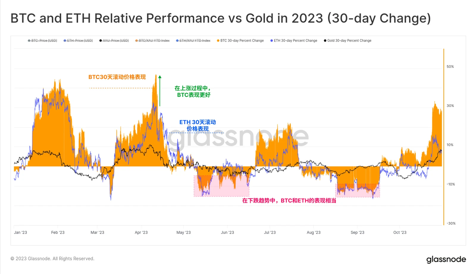 Glassnode:对比特币与以太坊的涨幅对比数据研究