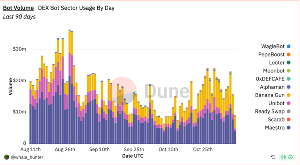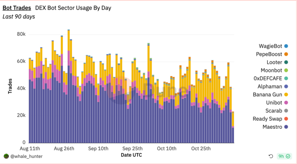 每日交易量数据 Source: https://dune.com/whale_hunter/dex-trading-bot-wars