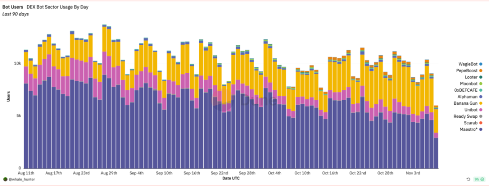 每日使用者数据 Source: https://dune.com/whale_hunter/dex-trading-bot-wars