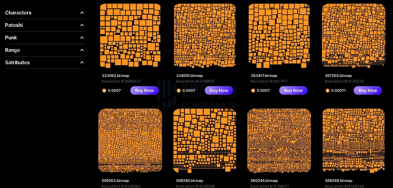 2. 选择一款喜欢的 Bitmap,你可以在左侧的特征检索栏中调整想要找寻的 Bitmap 样式。点击「Buy Now」(立即购买)。