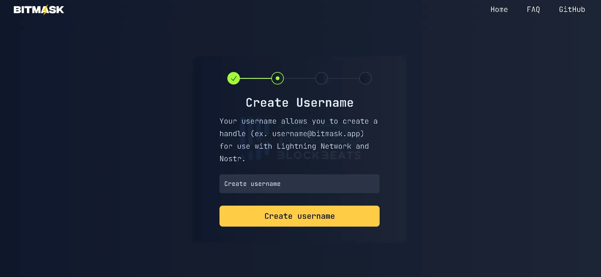 5. 创建一个用户名,该用户名会为你生成一个 handle(例如 [email protected])以与闪电网络和 Nostr 一起使用。输入用户名后点击「Create username"(创建用户名)。