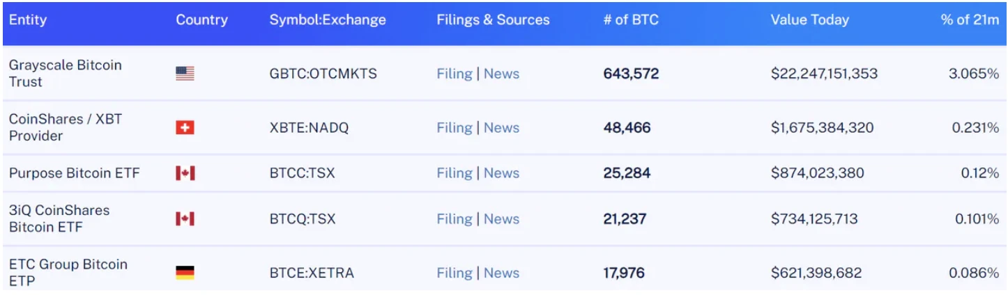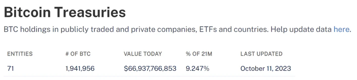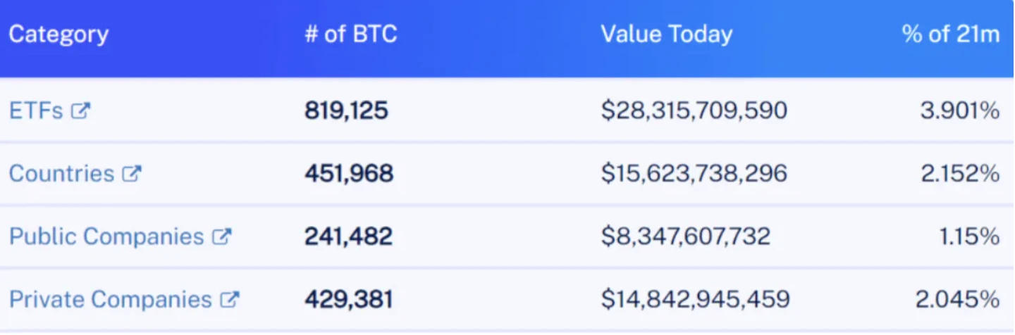想要看公开交易和私营公司、ETF 和国家的 BTC 持有量,