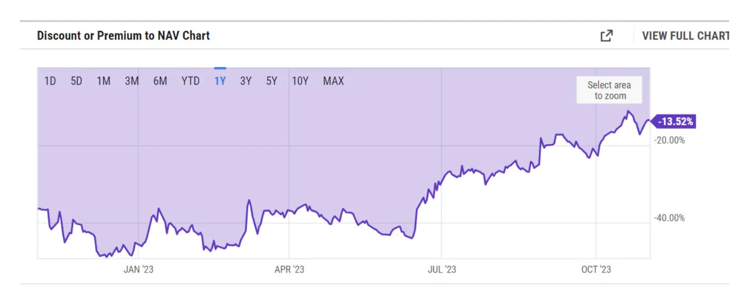 简单理解,如果为用户不能赎回,那其实本质上就还是一个指数 ETF,和灰度一样会有很大的价差,存在单向的套利空间。随着市场认为比特币现货 ETF 通过的概率变大,信心变足,折价率从 6 月 15 日的 44% 降至 11 月 3 日的 13.52% 。