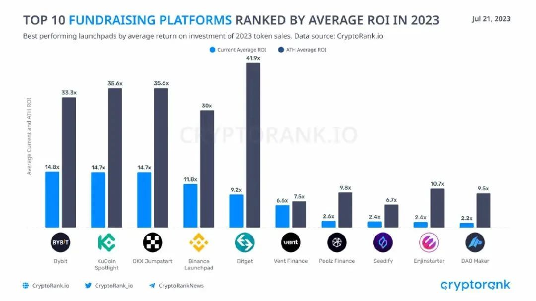 CryptoRank 公布 2023 年前十大平台 LaunchPad 的 ATH Average ROI 中,Bitget 位列第一。
