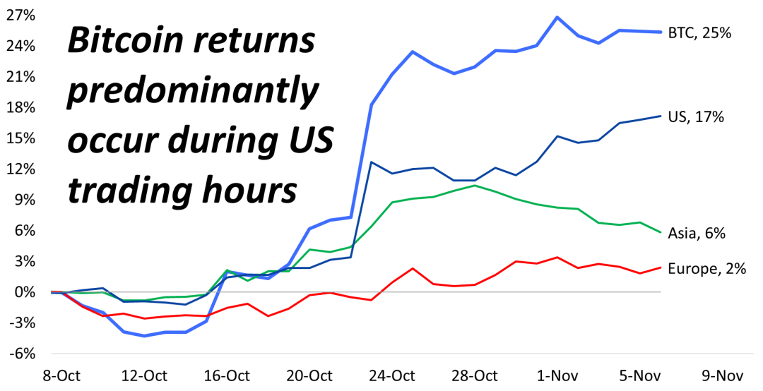 图表 8: 比特币价格主要在美国交易时段飙升