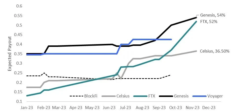 图表 4:以债权人价值百分比计价的债权-FTX 债权今年增加了两倍