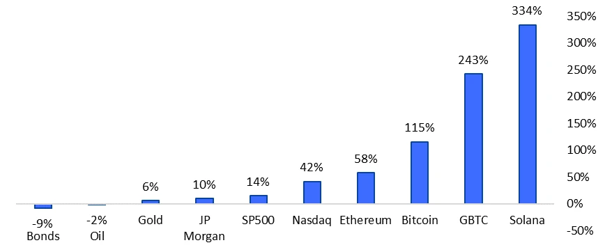 在 2024 年上半年,加密行业将有五个微观事件和一个宏观事件,这些事件可能对行业产生积极影响,可能会推高比特币的价格。2023 年,加密资产表现强劲,表现优于大多数其他资产。我们的基本价值主张在于在美国上市的比特币 ETF,具有注册投资顾问(RIA)的潜力,主要通过 ETF 管理 5 万亿美元的资产,将比特币作为多资产投资组合的基石。仅仅 1% 的配置就会导致 500 亿美元的比特币流入。