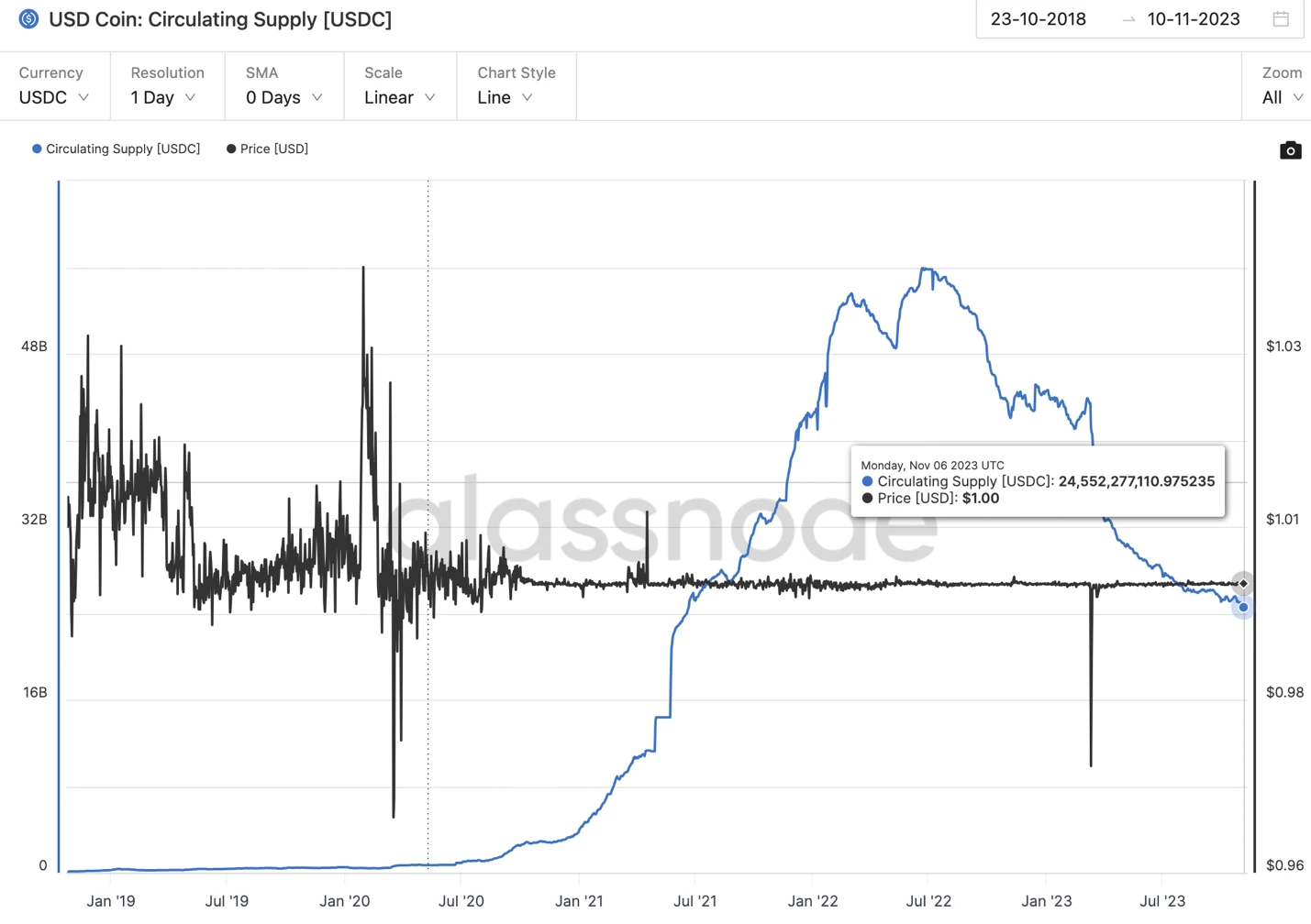 目前 Coinbase 平台持有 132 mln USDC。由于Q1的银行危机,导致硅谷银行失败 USDC 大幅回铸,以及 Binance 将 USDC 换为另一种稳定币导致 USDC 市值下降。但 Coinbase CEO Bria 认为美国监管风险可能会加剧,人们认为 USDC 与 Tether 等其他稳定币相比,更具有美国关联性,这一点还会使 USDC 在短期内面临困境。