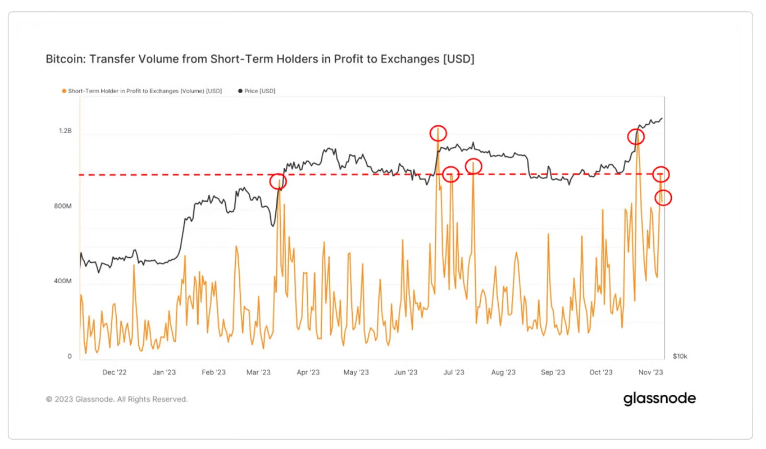 将短期持有者获利的转移量到交易所。