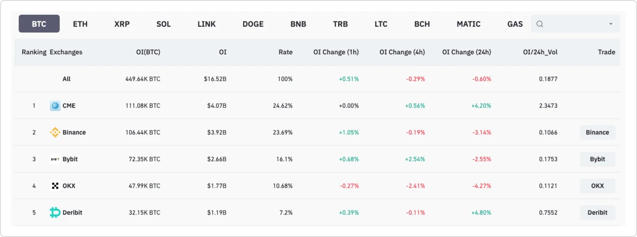 CME 目前以持仓量(OI)领先。