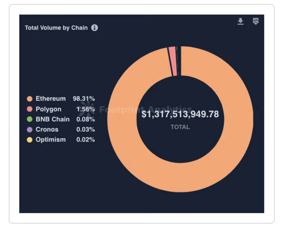以太坊仍然在大多数 NFT 交易量中占主导地位。当谈到传统 NFT 和前 10 名时,那些老牌项目仍然继续引起最多的兴趣,尽管最近有一些新的收藏进入前 10 名。