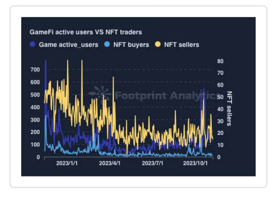 NFT 买家和卖家在所有区块链上占据了绝大多数的活动。该指标显示了 GameFi 生态系统实际上被低估的程度。
