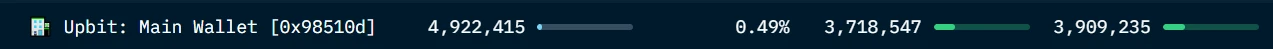 根据 nansen 数据显示,Upbit 地址在近一个月内持仓增加 400 万枚左右,持仓增长 3.7% 。而 Upbit 另一地址持仓则在近一个月内增加将近 400 万枚,目前 Upbit 总持仓占比 11.37% 。