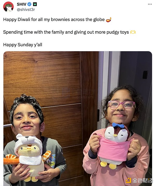 The PlayBook 主持人@shivst3r于 11 月 13 日晒出自己购买的 Pudgy Penguins 产品。