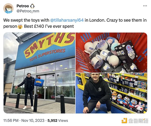 加密货币交易者、KOL @Petroo_mm 简介中介绍自己「持有超过 40 个 lilpudgys」,同时于 11 月 10 日用 140 英镑购买了 Pudgy Penguins。据 Blur 数据显示,lilpudgys 7 日涨幅为 13.55%,当前地板价为 0.4 ETH。