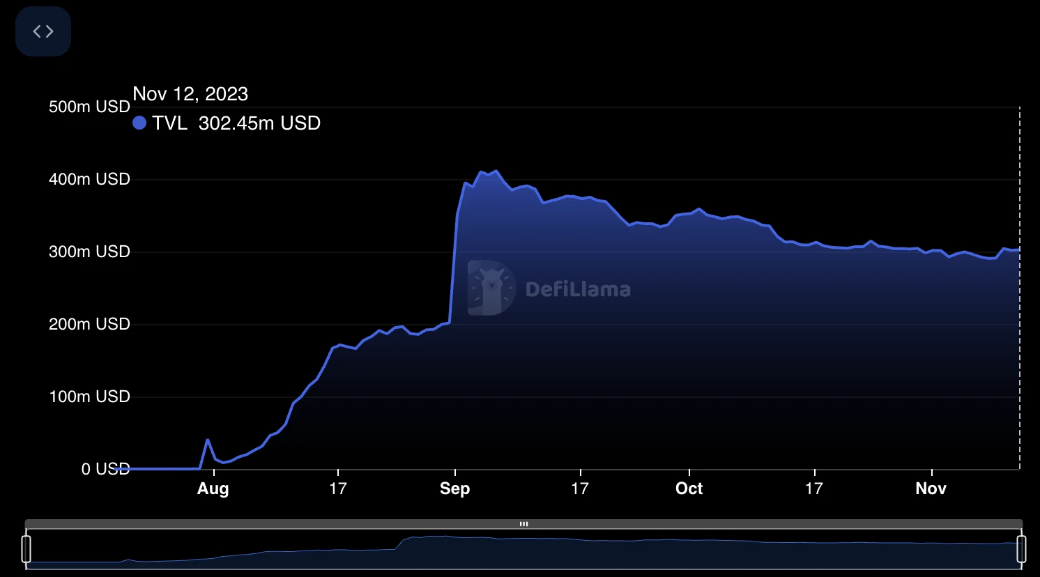 通过市场份额变化我们不难看出,Base 一举成为了增长最快的 Layer 2 。 DeFiLlama 数据显示,目前 Base TVL 已经突破 3 亿美元。