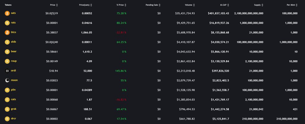 Bitcoin 上的代币类铭文资产,来源:BTCTOOL
