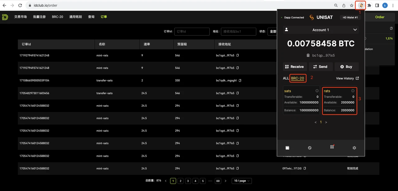 BRC-20 代币买卖不太一样,出售铭文代币需要刻转账铭文。下面以 iDclub 为例,展示一下如何出售 BRC-20 代币。