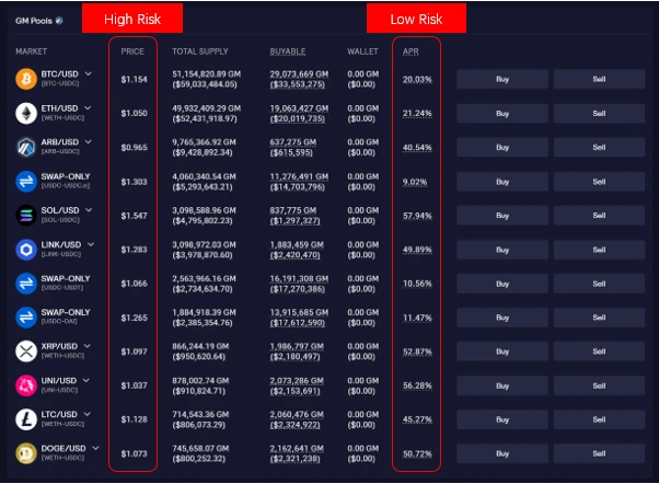 APR(Low Risk): Base APY 指的是交易对手支付的手续费收入,Bonus APY 指的是流动性激励的收益