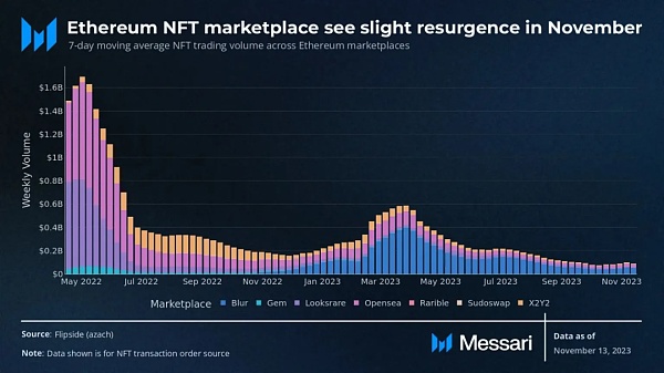 尽管以太坊NFT市场出现小幅复苏,但Solana上的NFT市场尚未达到同样的增长水平。以太坊NFT市场的增长得益于吸引了用户并促进了交易活动的平台的贡献。