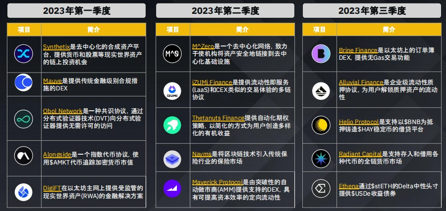 注:上述列表所含项目并不全面。对于提及的任何特定项目,币安不做推荐,也不提供背书。