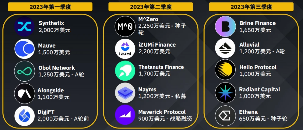 2023 年各季度排名前五的融资轮