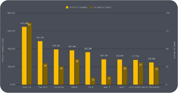 尽管如此,交易资金的数量在 2023 年 1 月和 2 月有所增加,主要得益于基础设施和Web3游戏领域的大幅增长。
