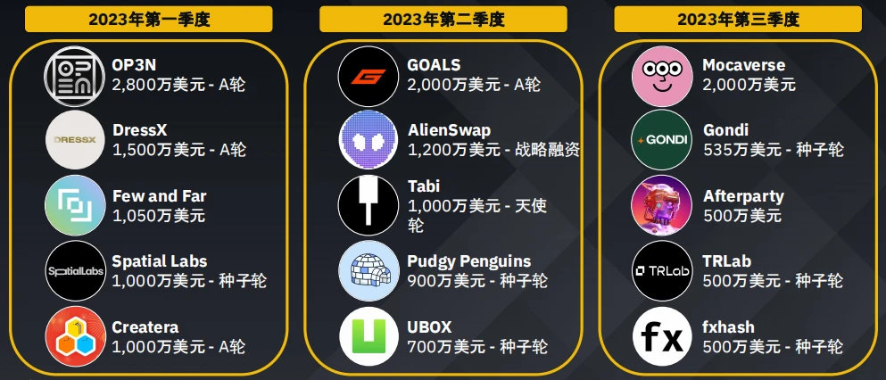 这或表明投资者看到了游戏行业的机会。但由于Web3游戏的投机性质以及可能缺乏真正的游戏爱好者,投资金额仍然保守。