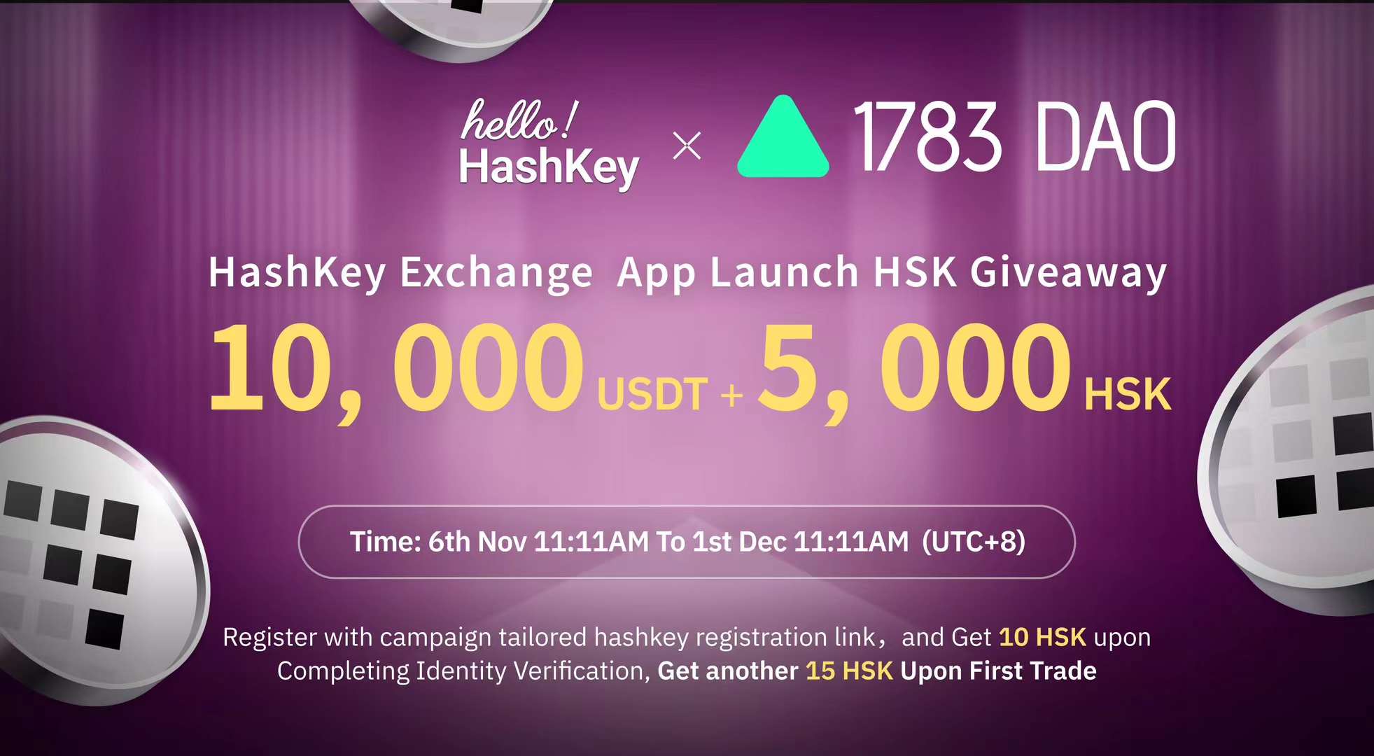 1783DAO和博链财经为社区成员申请了Hashkey平台币HSK和 USDT 的空投福利,累计10,000 USDT 和5,000 HSK