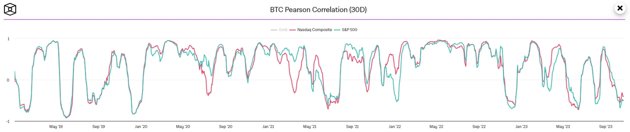 我们要判断什么阶段可以投资加密资产,首先需要对它进行一个资产类型的划分。比特币具有风险和避险二相性,比特币由于其波动幅度大可以划分为风险资产,又由于其去中心化、抗审查的特点拥有避险属性。由于比特币走势与美股走势相关性较强,我们在这里把比特币当作风险资产进行讨论。