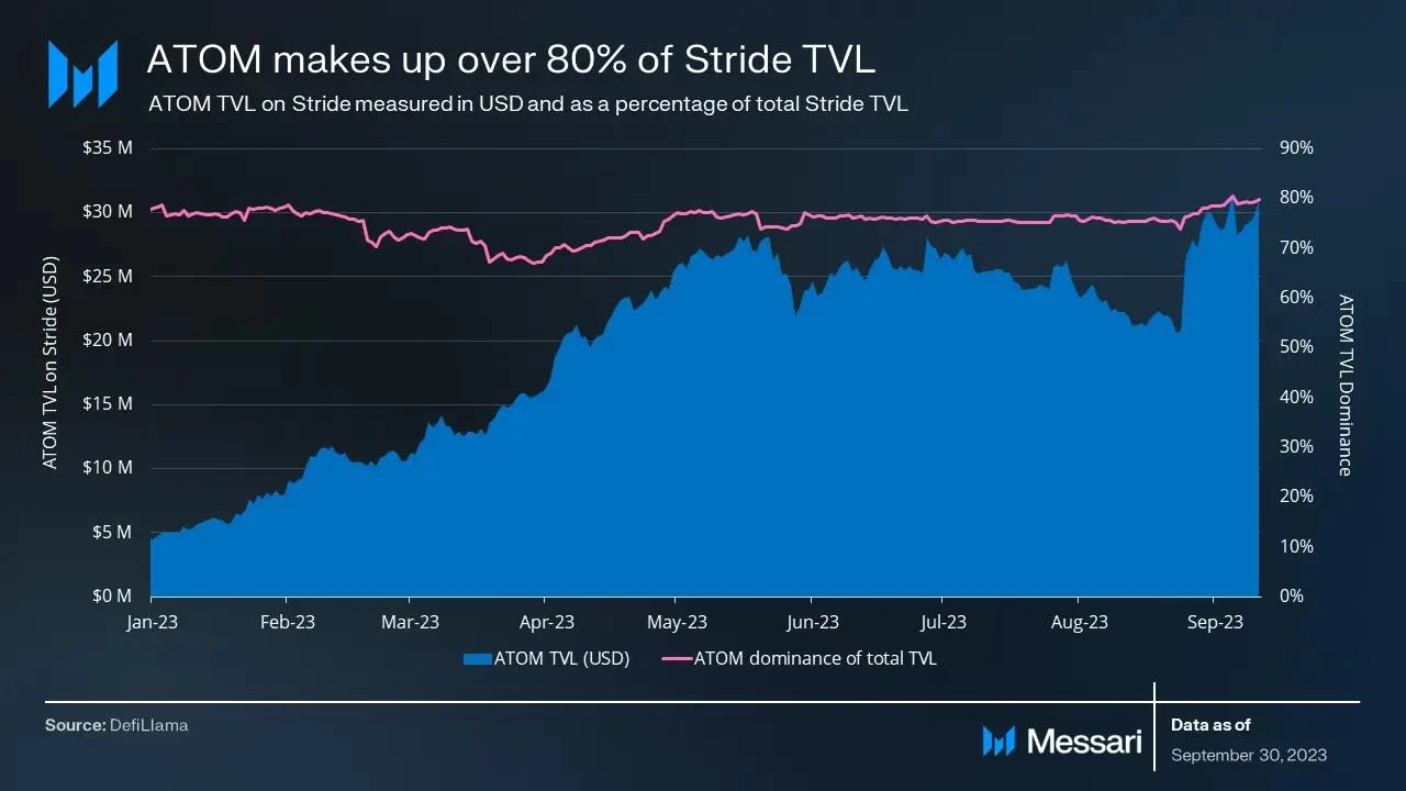 Osmosis AMM DEX 自诞生之初就与 Cosmos Hub 和 ATOM 深度整合。截至 2023 年第三季度,Osmosis 上的第一个也是 TVL 最大的池是 ATOM/OSMO 池。大约 75% 的 Osmosis TVL 来自 ATOM 池(主要是 ATOM/OSMO 和 ATOM/stATOM)。