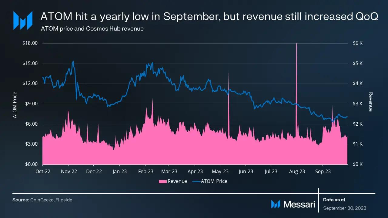 尽管 ATOM 价格和 Cosmos Hub 活动量下降,但其收入环比增长了 2.4% 。