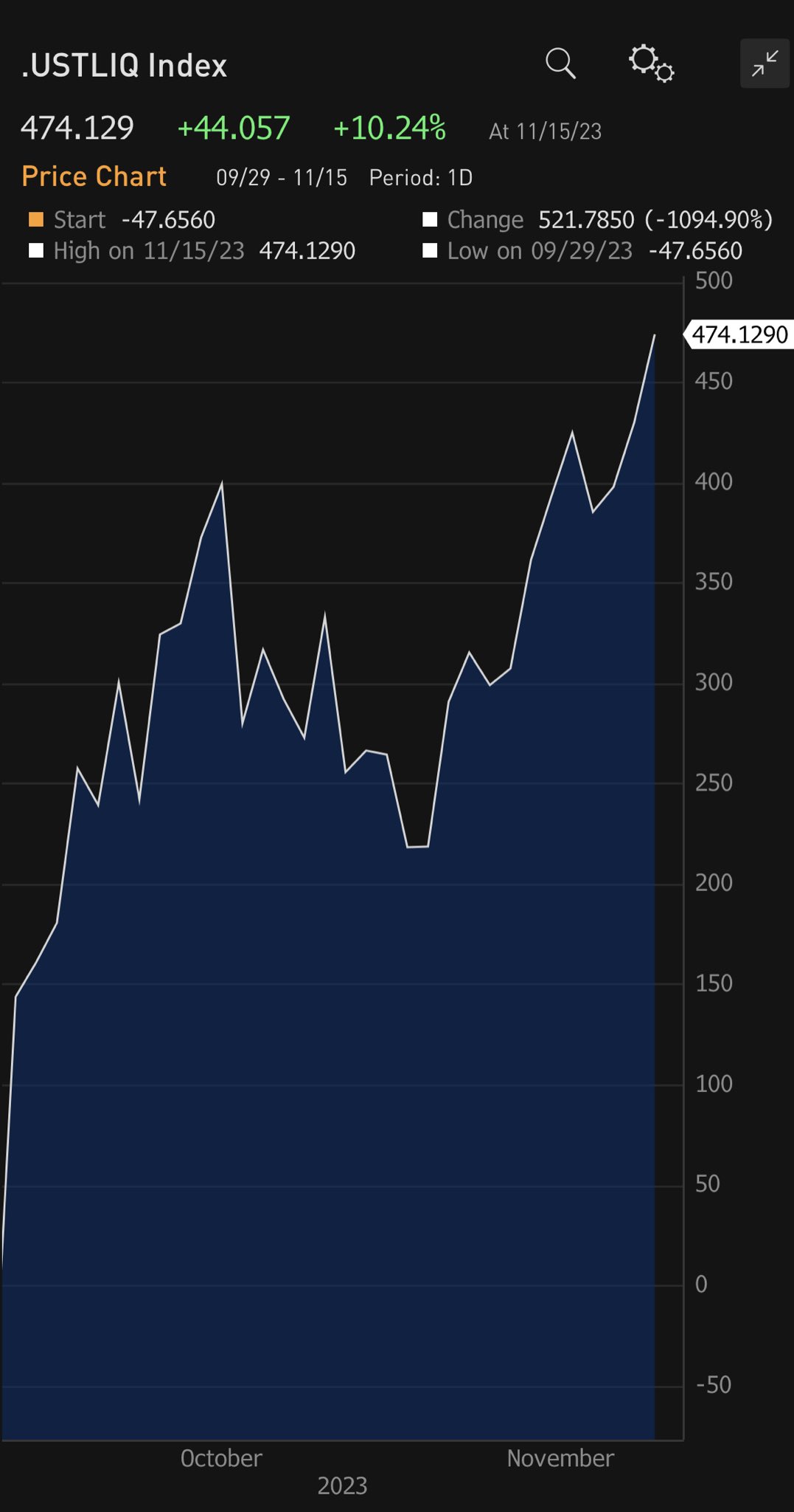 博链财经BroadChain获悉,11月16日,BitMEX联合创始人Arthur Hayes表示,自11月初以来,随着美联储隔夜逆回购协议(RRP)使用规模下降而美国财政部普通账户(TGA)余额没有变化,近2000亿美元的流动性被注入(市场)。