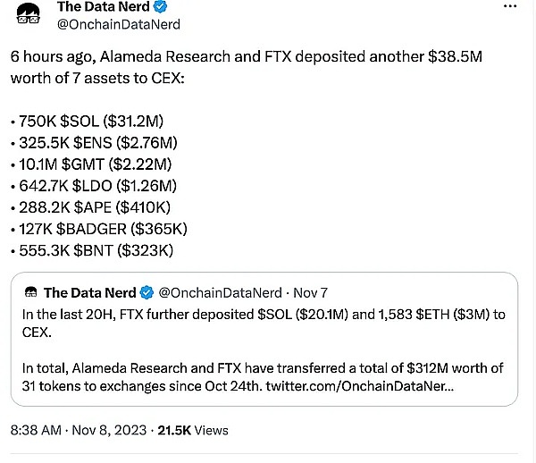 各方正在利用这次上涨的机会出售他们的资产。这包括项目开发团队、OG(如 Vitalik)以及陷入困境的交易所(如 FTX)。