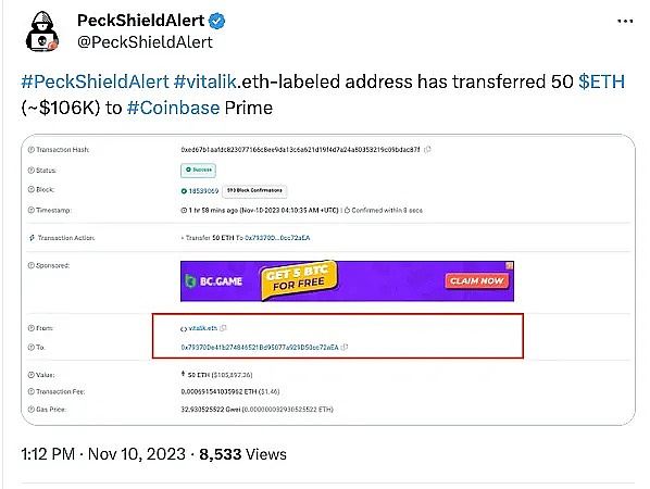 Vitalik 表示,自 2018 年以来,他从未以个人目的出售 ETH。然而,他经常以暴涨的价格出售 ETH,这有点有趣。