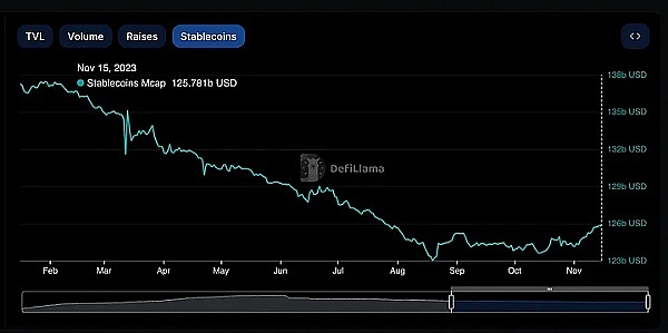 使用 DeFillama,我确实看到有稳定币流入,而且看起来可能很大,达到 30 亿。然而,如果我们缩小范围,与去年市场遭受的资金外流相比,这仍然是微不足道的。