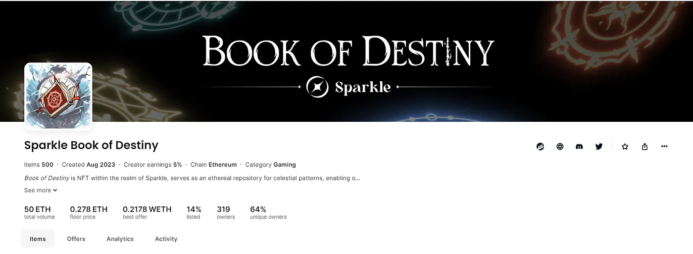 于8 月 7 日发布了创世 NFT,采用 ERC-6551协议,限量 500 个,总交易额 50 ETH,当前地板价0.27ETH。