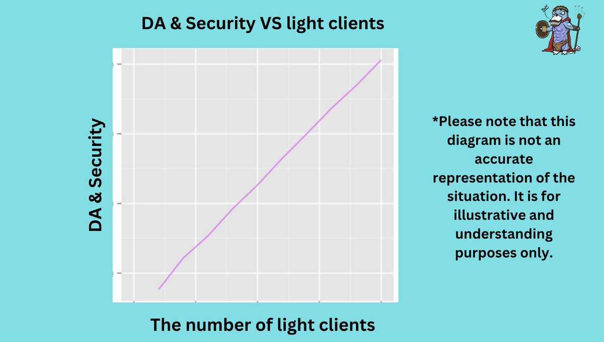 Celestia 中轻客户端越多,全节点重建原始区块数据的可能性就越大。同时,更多的轻客户端等于更大的区块,而不牺牲去中心化。
