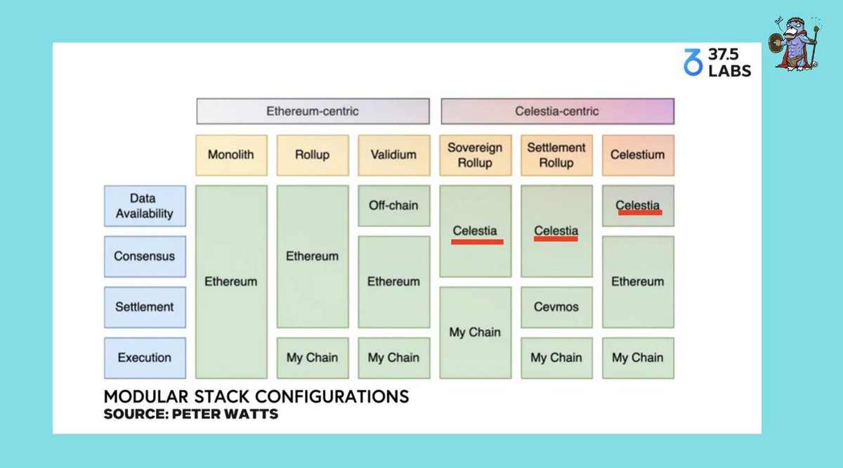 1. Celestia 只提供数据可获得性和共识层的服务,而不处理结算和执行